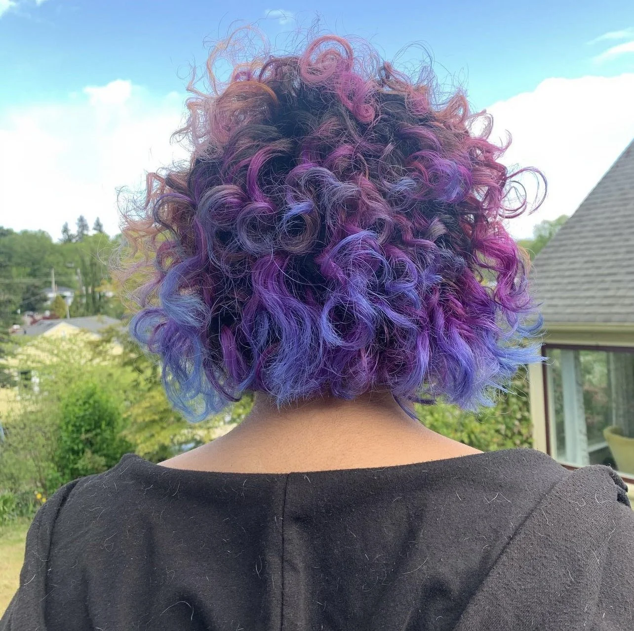 dimensional gem colored purple and pink curls cut in a shaggy bob
